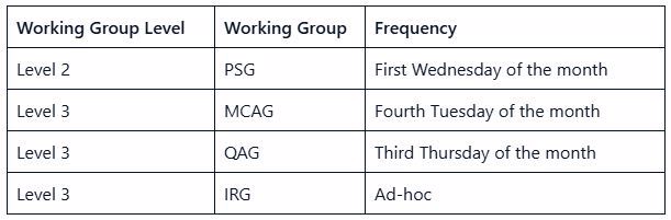 You can view meeting documents for each Working Group by navigating to the relevant Working Group page; for example, the Migration & Cutover Advisory Group (MCAG) is viewable via the navigation menu Migration -> Migration Governance ->.
