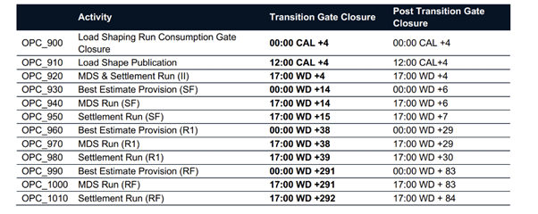 The MHHS Design Workstream delivered the MHHS Baselined Design Artefacts and Operational Choreography V5.5 which delivered the Post Transition Settlement timings, highlighted in the table below: